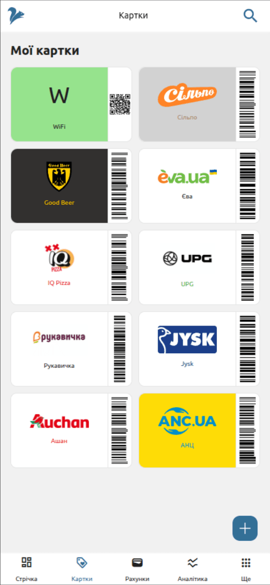 Більше жодного зайвого пластику! Додавай будь-які дисконтні картки скануванням QR-коду або вручну. Швидкий доступ до карти прямо на касі — і ти завжди отримуєш свою максимальну вигоду.
